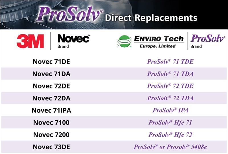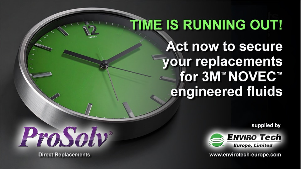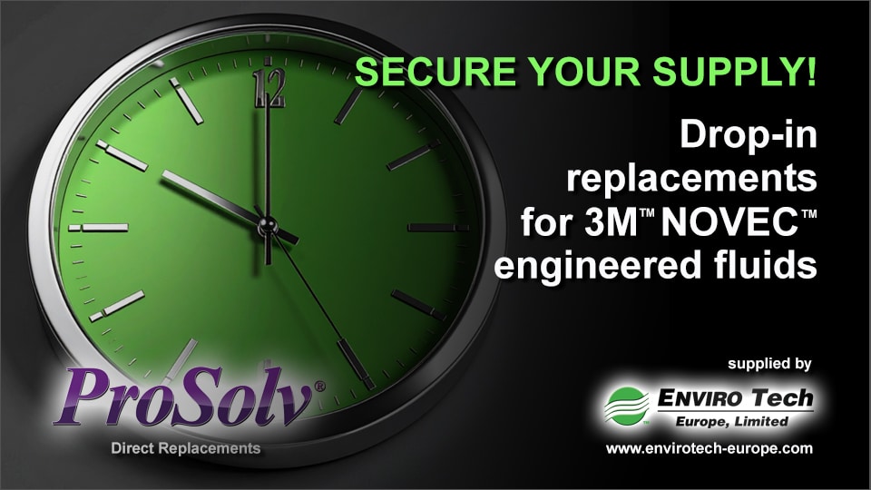 EnviroTech Europe has introduced ProSolv® Direct Replacements for 3M™ Novec™ Engineered Fluids – formulated as chemically exact, drop-in alternatives for all Novec grades. These solvents are designed to: